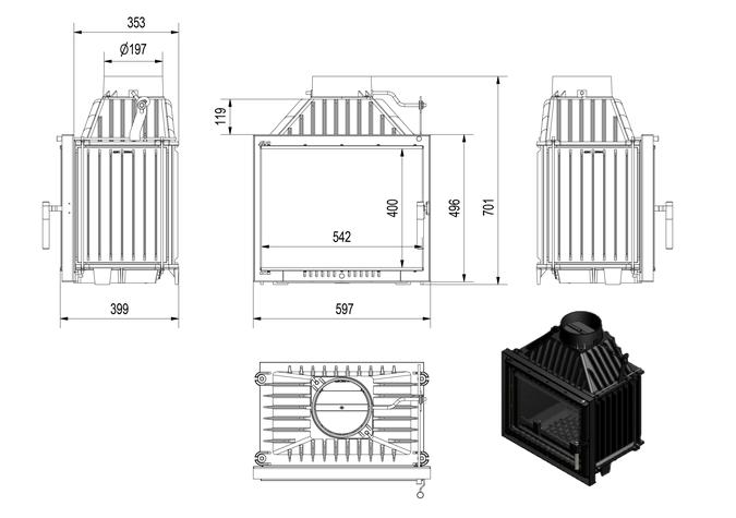 13 500,00 zł Dodaj do koszykaKominek powietrzny stalowy KRATKI LUCY prawy BS 12 kW Ø 200
