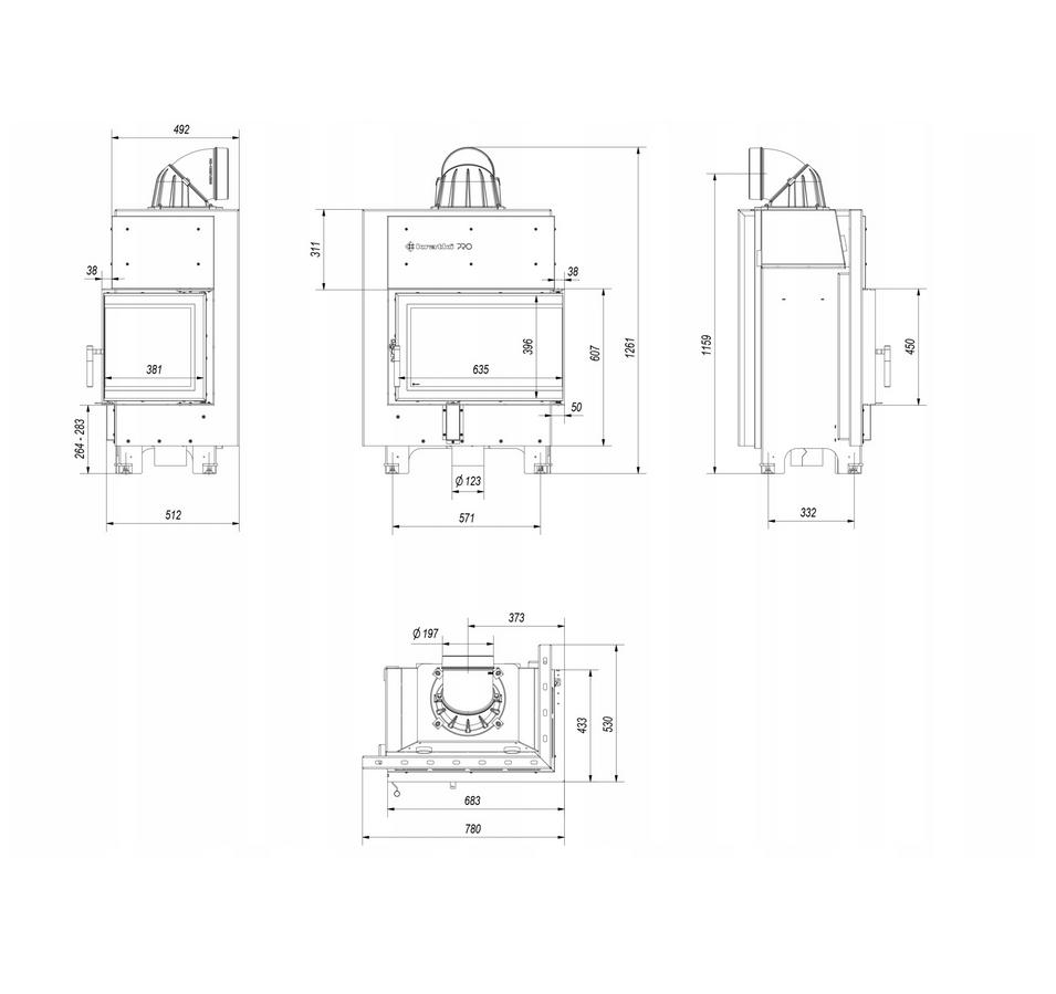 Stabilne i wytrzymałe na naprężenia drzwi kominka wykonane z zamkniętego profilu. Uszczelka drzwi znajduje się w wyprofilowanym kanale, co gwarantuje odpowiednie jej przyleganie oraz zapobiega ewentualnemu wypadnięciu podczas eksploatacji.