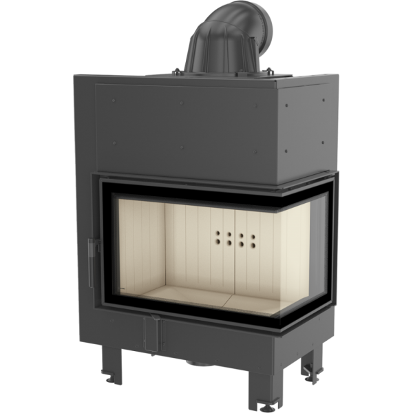 Wkład kominkowy z dwoma szybami zestawionymi ze sobą pod kątem prostym (szyby łączone bez szprosa).