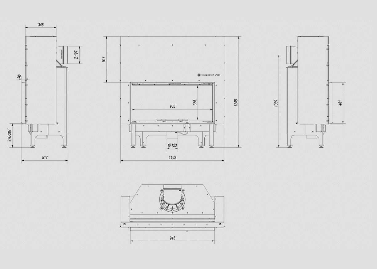 Decorative, heat-resistant glass that can withstand temperatures up to 800 ° C, which gives the fireplace a modern and elegant look, optically enlarges the front of the insert.