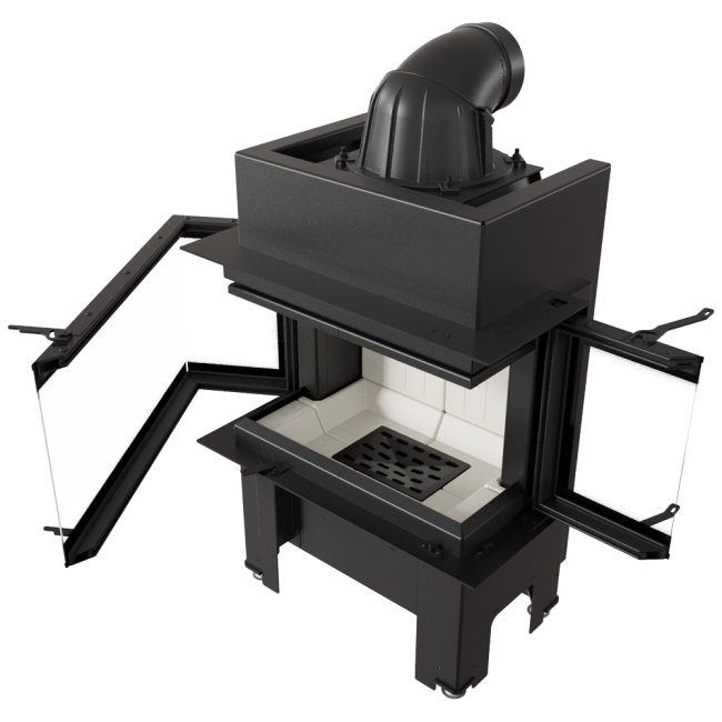 Trojité ohnisko zaisťuje bezpečnosť používania, pretože má systém bočného otvárania. Nemusíte otvárať všetky tri okná – stačí otvoriť len jedno a prikladať drevo jednoducho a pohodlne.