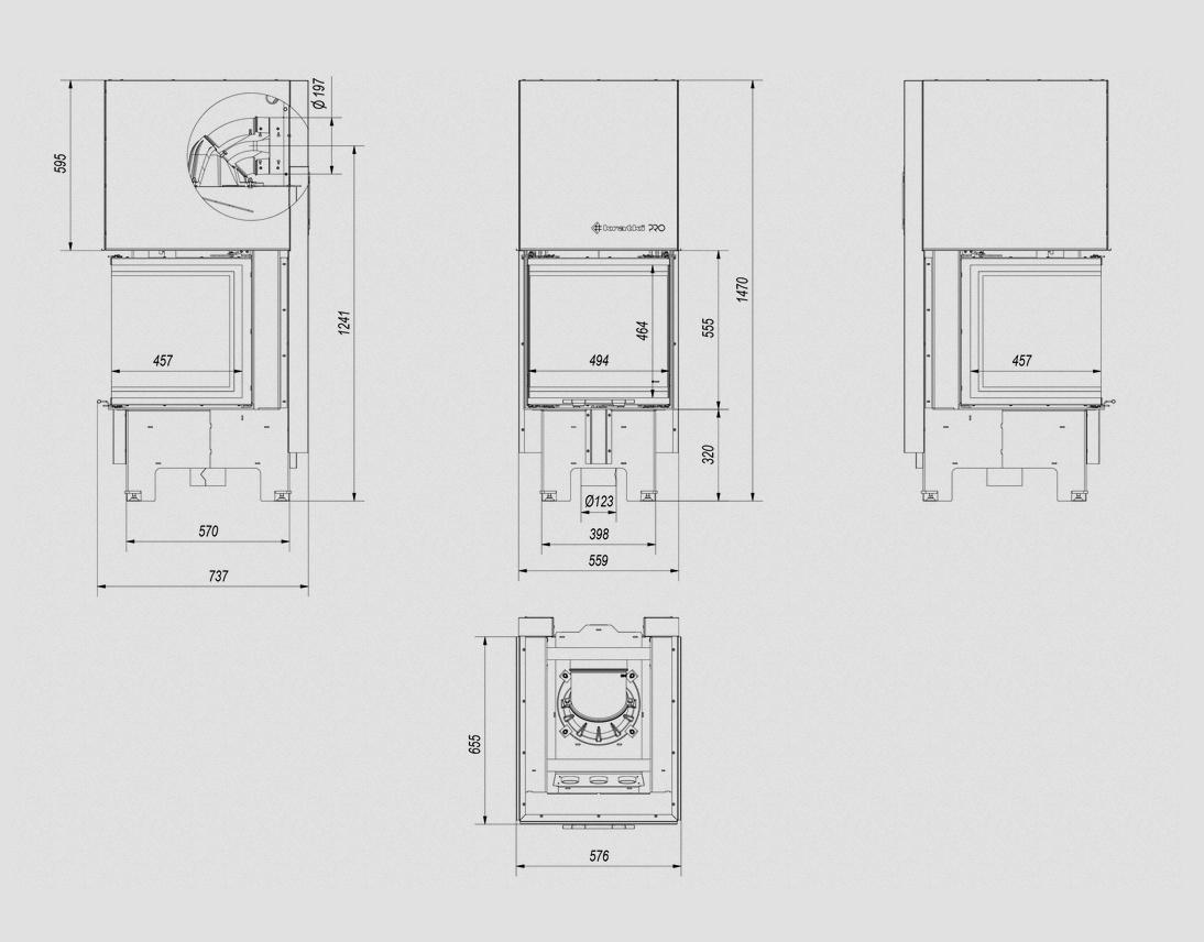 Wkład bezrusztowy – dopalanie na popiele, co oznacza, że opał wypala się na drobny popiół, którego pozostaje minimalna ilość. Uzyskana w ten sposób energia cieplna z drewna zostaje maksymalnie wykorzystana. Płyta dolna wkładu znacznie obniżona w stosunku do drzwi.