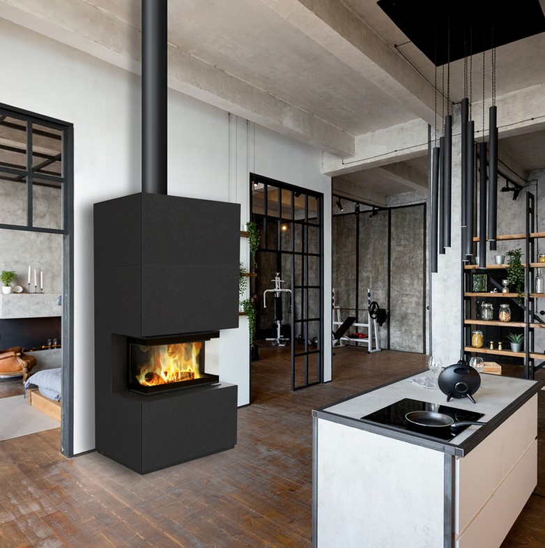 We have a ready solution for you! The HOME EASY BOX fireplace is a combination of a modern and ecological NBC 7 insert with side door opening and a modular casing based on a steel frame with granite panels. The minimalism of the casing makes it fit perfectly into any interior. The whole is a perfect response to the current trends in interior design. Perfect proportions and minimalism combined with a three-sided vision of fire will create a cozy atmosphere.