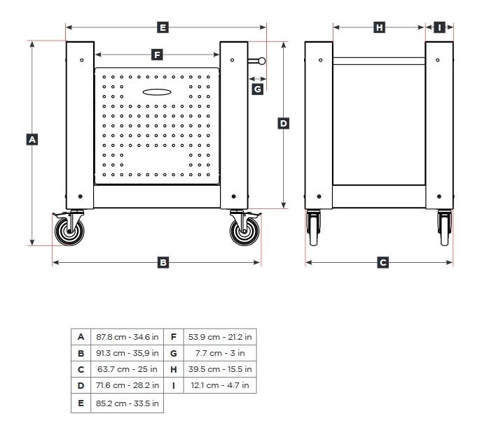 Podstawę należy zmontować: przykręcić 4 nóżki do półki, następnie zamontować 4 kółka, a na końcu ustawić ppiec na górze i przykręcić 4 nóżki do podstawy pieca.