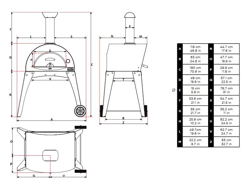 Lekki i łatwy w obsłudze, posiadający duże kółka, które ułatwiają wygodne przemieszczanie pieca w dowolne miejsce. Piec ma szamotowe palenisko z kopułą ze stali nierdzewnej.Szybko osiąga temperaturę roboczą.