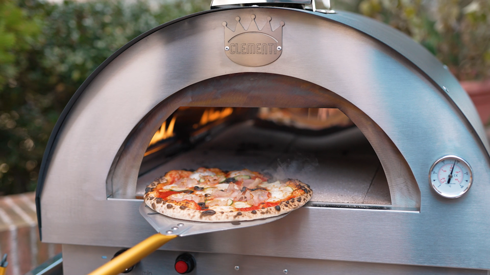 Podłącz Clementino do butli z gazem. Zdejmij drzwi, przekręć pokrętło i naciśnij przycisk zasilania. Zamknij drzwi i poczekaj około 15 minut, aż osiągnie temperaturę. Ciesz się pizzą z przyjaciółmi i rodziną!