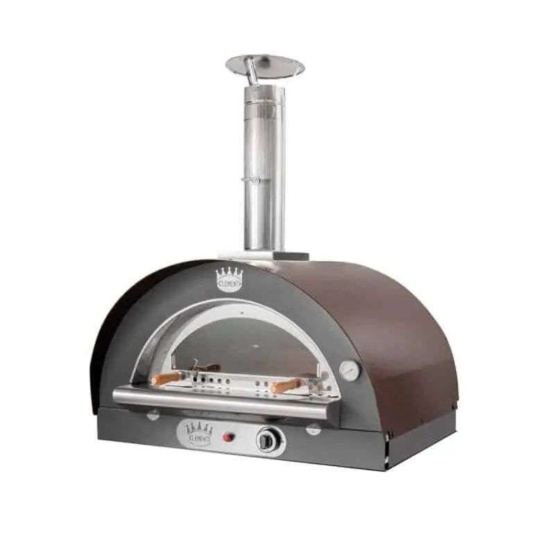 Gazowe piece do pizzy Clementi mogą zagwarantować te same standardy pieczenia , co modele opalane drewnem. Bardzo szybki czas nagrzewania (ok. 30 minut) oraz wygoda zasilania gazem czynią je idealnymi produktami nawet w przypadkach, gdy nie ma możliwości zagospodarowania składowania drewna. Kompatybilne zarówno z LPG, jak i metanem, mają całkowicie stalową kopułę i podstawę z materiału ogniotrwałego. Wyposażony w pojedynczą komorę spalania i Pieczenia, możliwe jest Przygotowanie każdego rodzaju żywności.