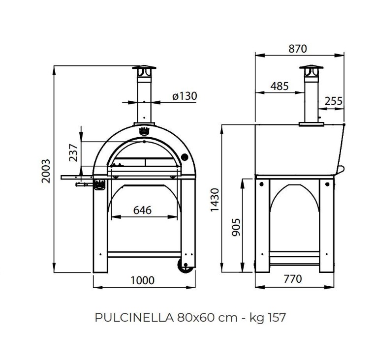 Piec do pizzy PULCINELLA opalany drewnem 80×60