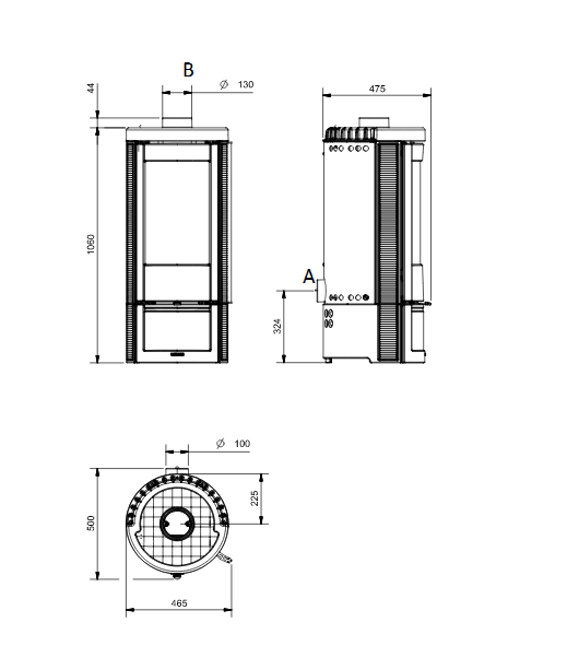 Cechy: Piec w całości z żeliwa emaliowanego, Łukowe żeliwne drzwiczki, Palenisko z żeliwa i Nordiker, Popielnik wyjmowany z przodu, Powietrze pierwotne i wtórne regulowane jednym regulatorem, wstępnie ustawione powietrze tercjalne z systemem dopalania, Ergonomiczny uchwyt, Odporne szkło ceramiczne do 750°, Możliwość pobierania powietrza z zewnątrz