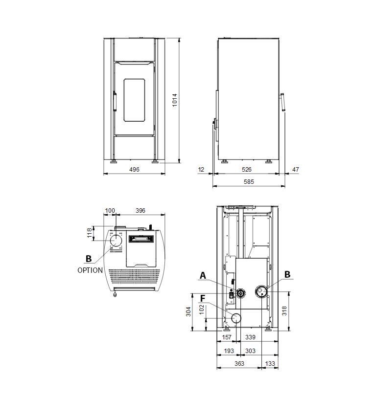 • Możliwość wylotu dymu: tylny, górny
