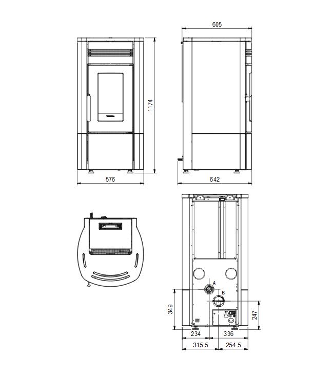 • Możliwość wylotu dymu: tylny, górny