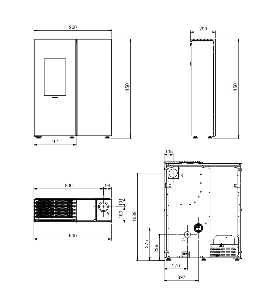 • Możliwości wylotu systemu kanałów (Ø80 mm): tył