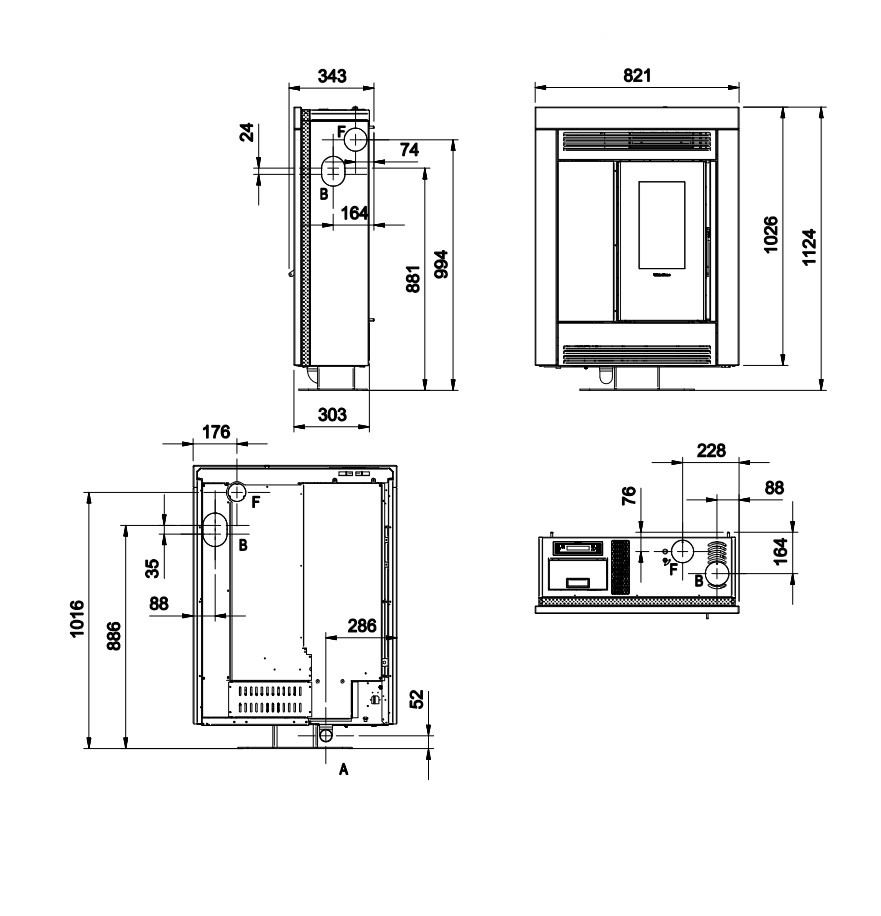• Kanały do 6 m. i odprowadzanie spalin przez 1 tylny, górny lub prawy boczny wylot Ø80