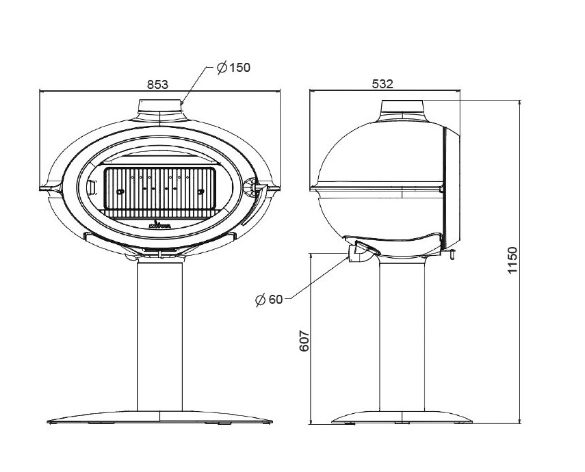 – wykończenie kolorystyczne: antracyt – spalanie wtórne – wkład odpowiedni do domów z rekuperacją – doprowadzenie powietrza do spalania bezpośrednio z zewnątrz – regulacja dopływu powietrza – przedni załadunek drewna – górny wylot spalin