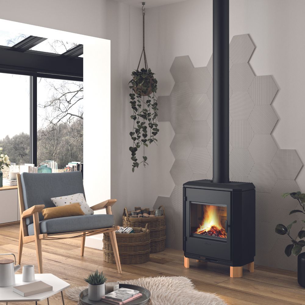 – wykończenie kolorystyczne: antracyt, drewniane nózki – przedni załadunek drewna – górny wylot spalin – spalanie wtórne – doprowadzenie powietrza do spalania bezpośrednio z zewnątrz – regulacja dopływu powietrza pierwotnego i wtórnego – deflektor – popielnik – ruszt – paliwo opałowe: drewno – 5 lat gwarancji