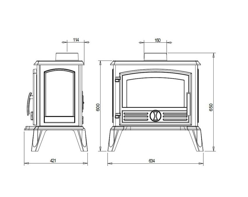 – wykończenie kolorystyczne: antracyt – spalanie wtórne – regulacja dopływu powietrza pierwotnego i wtórnego – przedni załadunek drewna – górny wylot spalin – nawiew powietrza na szybę – deflektor – popielnik – ruszt – paliwo opałowe: drewno – 5 lat gwarancji