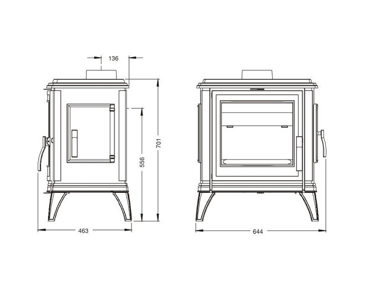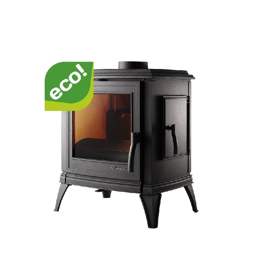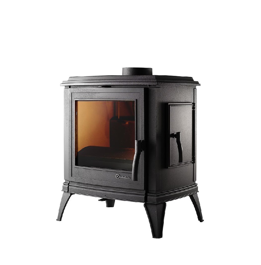 – wykończenie kolorystyczne: antracyt – regulacja dopływu powietrza pierwotnego i wtórnego – przedni oraz boczny załadunek drewna – górny lub tylny wylot spalin – deflektor – popielnik – ruszt – paliwo opałowe: drewno – 5 lat gwarancji – zgodność z normą EN 13240 – certyfikat CE – certyfikat FLAMME VERTE