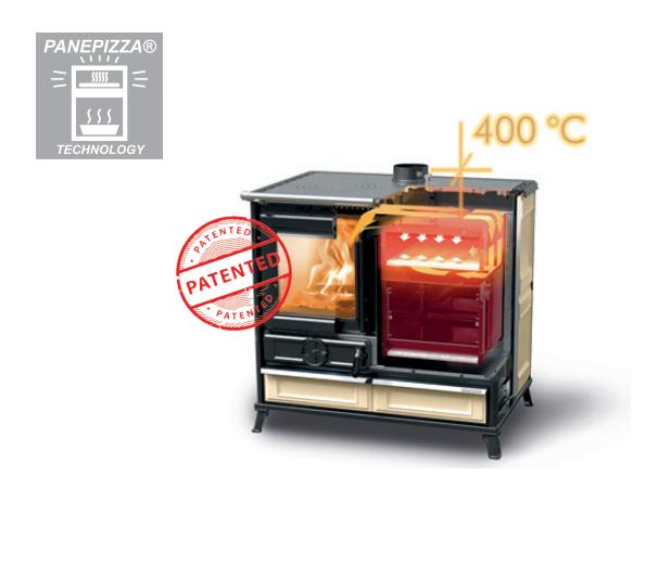 PANEPIZZA: Nowoczesne opatentowane urządzenie do zarządzania temperaturą pieców, regulator temperatury piekarnika, drzwiczki piekarnika z 2 termometrami: który pozwala maksymalnie wykorzystać ciepło z piekarników. Dzięki dedykowanemu kanałowi dymowemu górny piekarnik może osiągnąć wyższe temperatury, idealne do pieczenia pizzy, chleba i innych przysmaków.