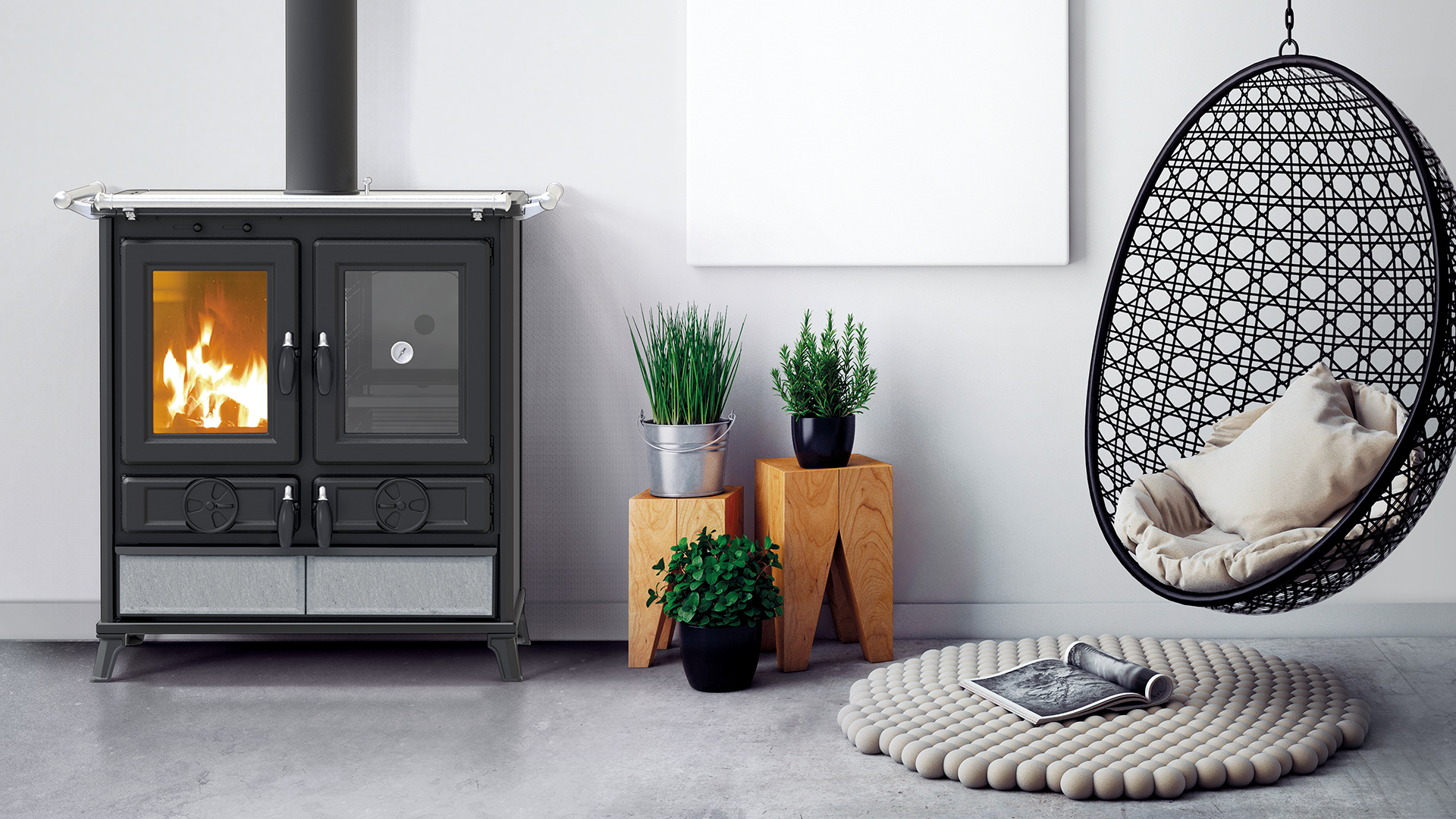 Kuchnia na drewno Violetta to urządzenie z nowej linii produktów włoskiej marki Thermorossi. Ze względu na swój niepowtarzalny design oraz funkcjonalność jest znakomitym dodatkiem do wnętrz zarówno nowoczesnych jak i klasycznych.