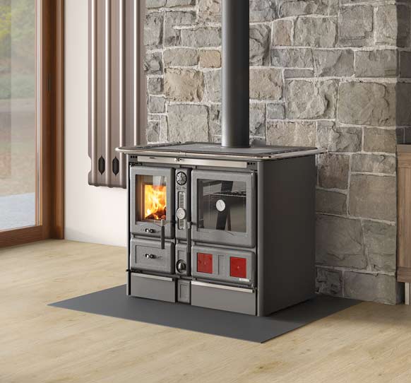 Kuchenka opalana drewnem, która łączy się z instalacją grzewczą i wodno-kanalizacyjną, wydajnie i ekologicznie ogrzewając cały dom z doskonałą mocą cieplną, niskim zużyciem drewna i pełnym poszanowaniem środowiska. Niskie zużycie drewna i całkowite poszanowanie środowiska. Wyposażona w duży piekarnik i żeliwną płytę do gotowania