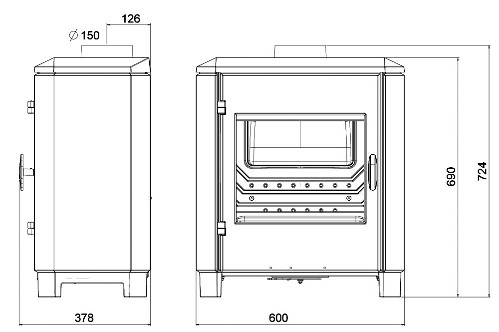 – średnica wylotu spalin: 150 mm