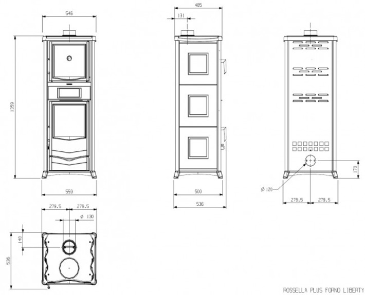 Piecyk wolnostojący na drewno z piekarnikiem, powietrzny. Palenisko i drzwiczki żeliwne, wysuwany popielnik, dolna szuflada na drewno. Obudowa wykonana z kafli Majolica, dostępny w kolorach: beżowy i bordowy lub w kamieniu naturalnym – steatyt. Powietrze do spalania: pierwotne + wtórne + system ‚czysta szyba’. Podłączenie wylotu spalin z góry.