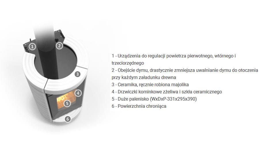 Smoke by-pass -Obejście dymu drastycznie zmniejsza ilość dymu w pomieszczeniu przy każdym załadunku drewna, co daje efekt zdrowy dla całej rodziny. Urządzenie utrzymuje stałą wydajność i upraszcza obsługę niezwykłą czystość.