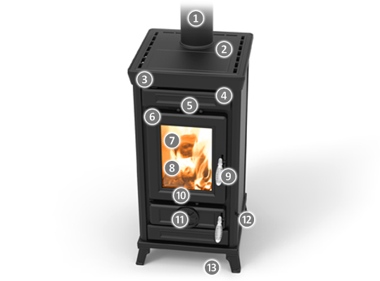 Smoke by-pass -Obejście dymu drastycznie zmniejsza ilość dymu w pomieszczeniu przy każdym załadunku drewna, co daje efekt zdrowy dla całej rodziny. Urządzenie utrzymuje stałą wydajność i upraszcza obsługę niezwykłą czystość.