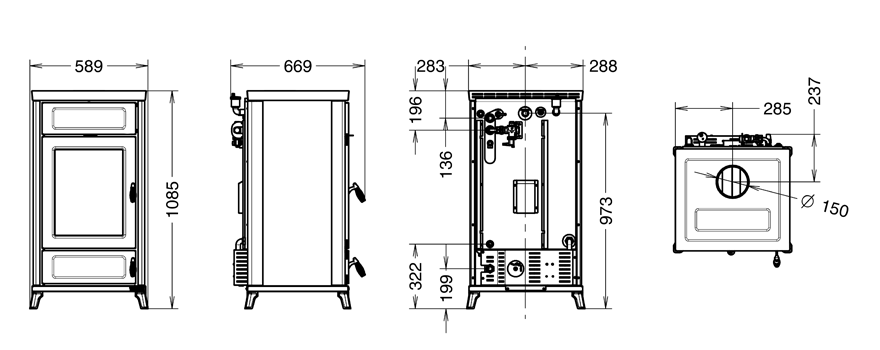Piecyk z płaszczem wodnym opalany drewnem DORA Gotowy do uruchomienia