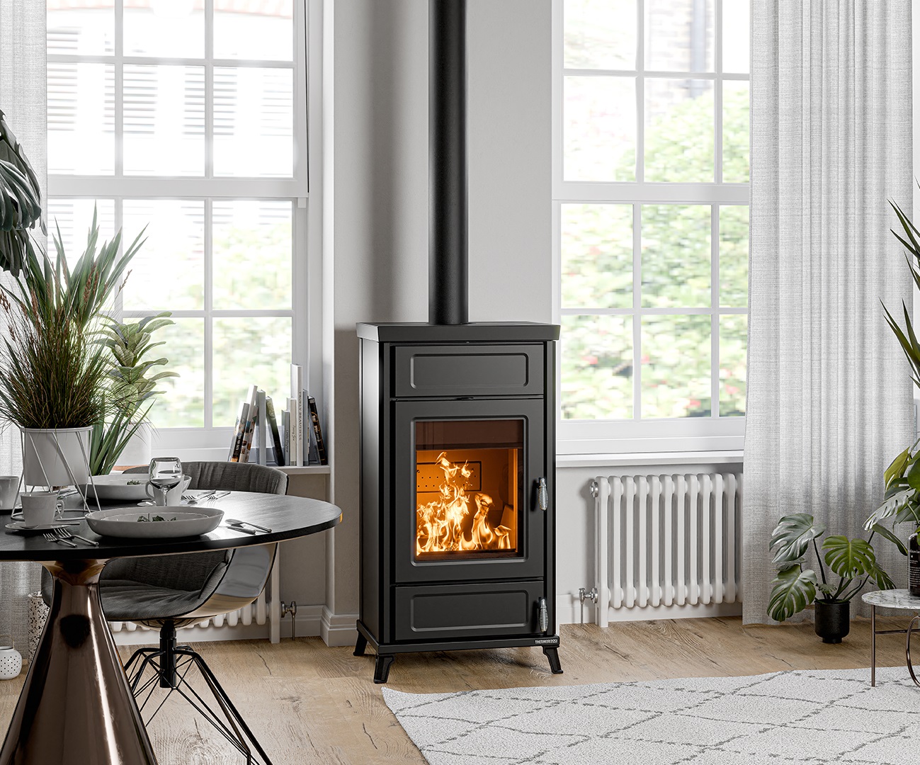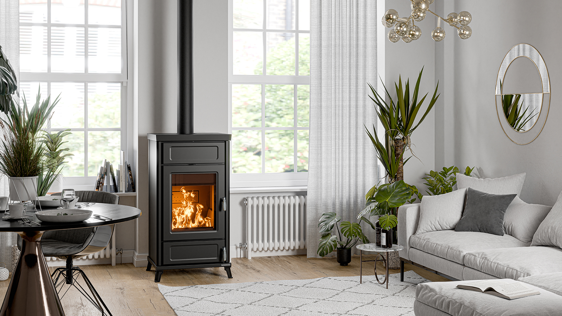 Piecyk Dora idealnie nadaje się do ogrzewania powierzchni o powierzchni do 207 m². Posiada duże palenisko, uchwyty w stylu vintage, termometr bojlera, automatyczny regulator ciągu i wyjmowaną szufladę na popiół