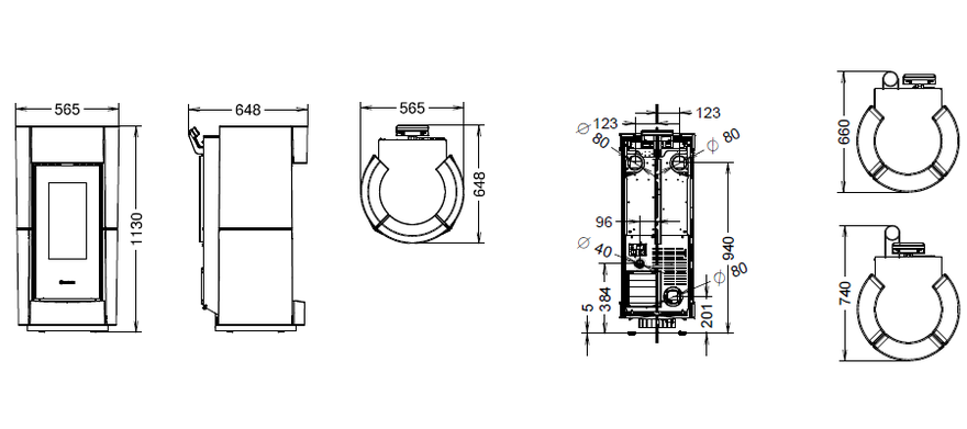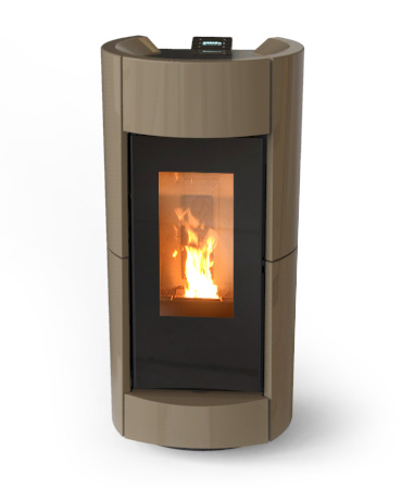 Piec na pellet z kanałem wentylacyjnym i dwoma niezależnymi otworami wentylacyjnymi, każdy z regulowanym mechanizmem przepływu powietrza, płyta grzewcza z higienicznego i łatwego do czyszczenia szkła (podgrzewacz do jedzenia do postawienia na górze „Dinner” jest opcjonalny). Można również wybrać rozprowadzanie 100% ciepłego powietrza do każdego wyjścia.