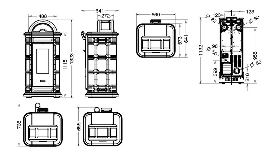 Piec jest zbudowany z materiałów z dużą odpornością na temperaturę i o dużej grubości, zgodnych z najbardziej restrykcyjnymi przepisami europejskimi. Obudowa z majoliki