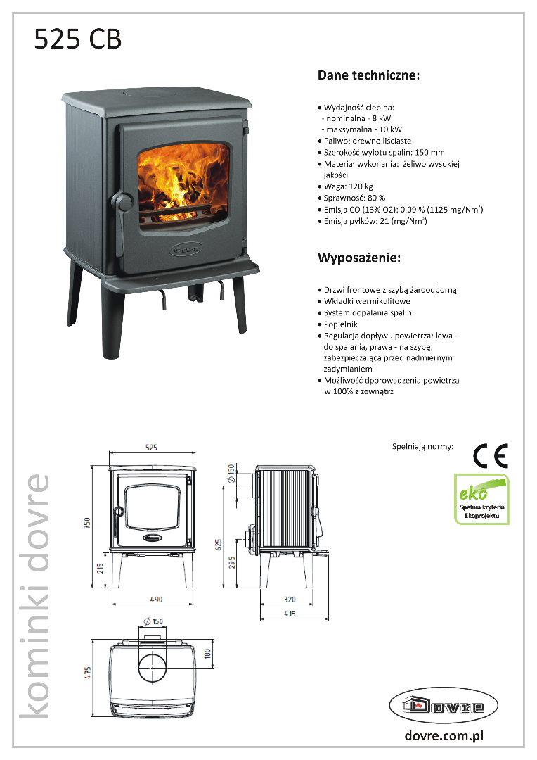 Piecyk wolnostojący żeliwny na drewno Dovre 525 CB doporowadzenie powietrza w 100% z zewnątrz6490