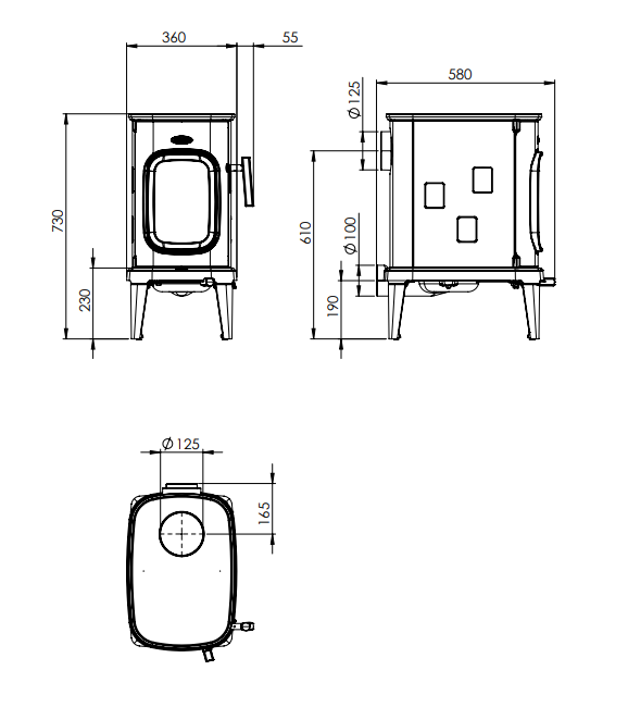 Podłączenie dymowe: ø125 góra lub tył piecyka;