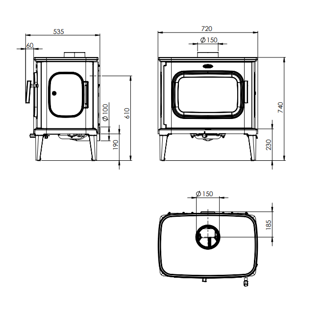 Podłączenie dymowe: ø150 góra lub tył piecyka;
