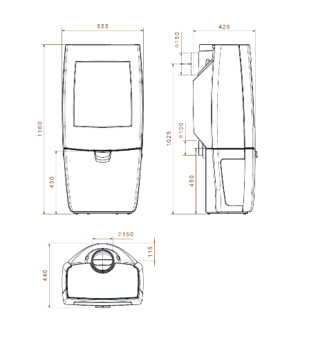 Napojenie na komín: fi 150 (zhora alebo zozadu);