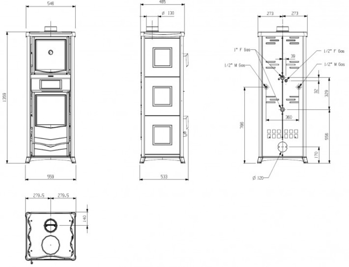 Piecyk z płaszczem wodnym przeznaczony do pracy w układzie zamkniętym, maksymalne ciśnienie robocze 3 bary. Płaszcz wodny wyposażony w układ chłodzenia na zaworze dopuszczającym z sondą, optymalna temperatura pracy 70-75 ˚C. Palenisko i drzwiczki żeliwne, wysuwany popielnik, dolna szuflada na drewno. Obudowa wykonana z kafli Majolica, dostępny w kolorach: beżowy i bordowy lub w kamieniu naturalnym – steatyt. Powietrze do spalania: pierwotne + wtórne + system ‚czysta szyba’. Podłączenie wylotu spalin z góry.