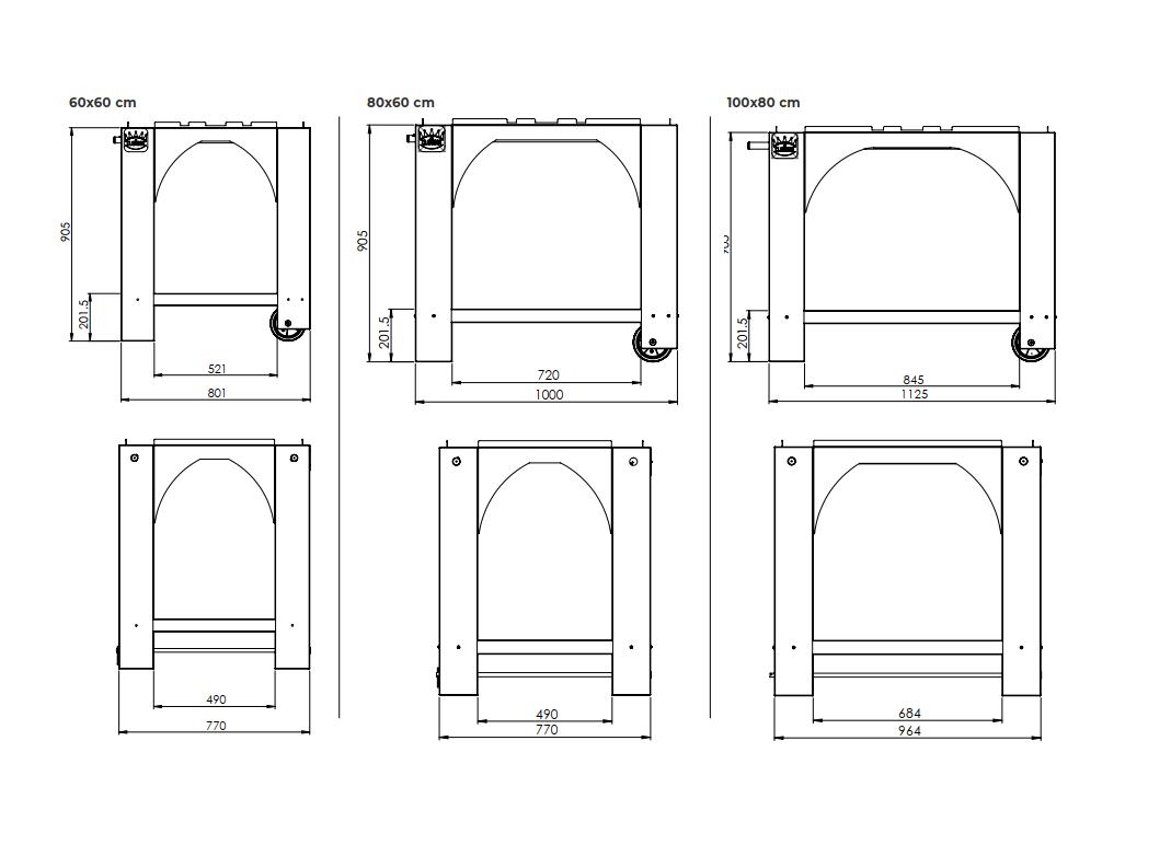 Wózek kompatybilny z piecem GOLD / PULCINELLA wyposażony w malowaną półkę, 2 kółka, zamykaną półkę boczną ze stali nierdzewnej