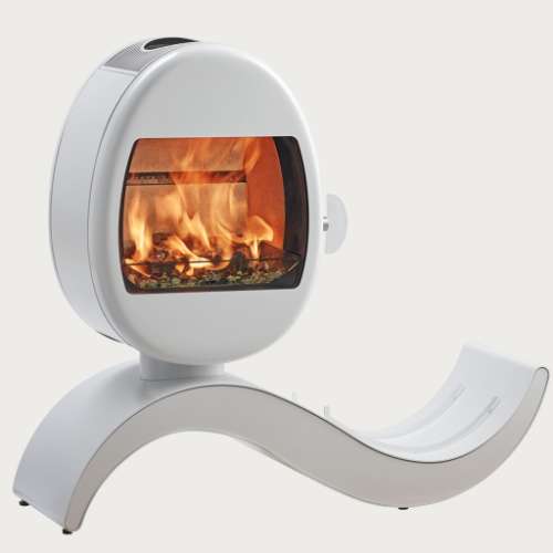 Die organischen Formen der Scan 66-Reihe bilden einen faszinierenden Rahmen für die Flammen, und die Sicht auf das Feuer wird durch die Verwendung von Glas für die Holzscheitstütze maximiert.