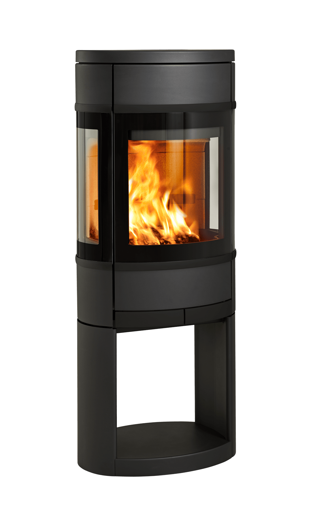 Duże boczne szyby zapewniają unikalny widok na płomienie. Wybór pomiędzy uchwytami i listwami w kolorze czarnym lub z aluminium. Model dostępny na cokole lub z zamkniętym albo otwartym portalem.
