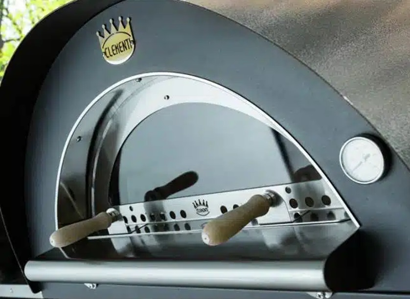 Szklane drzwiczki zamykające do pieców do pizzy Clementi, które pozwalają obserwować komorę pieca podczas wypieku pizzy czy tez innych potraw. I możemy sami zdecydować kiedy pizza jest gotowa bez odsuwania drzwi paleniska.