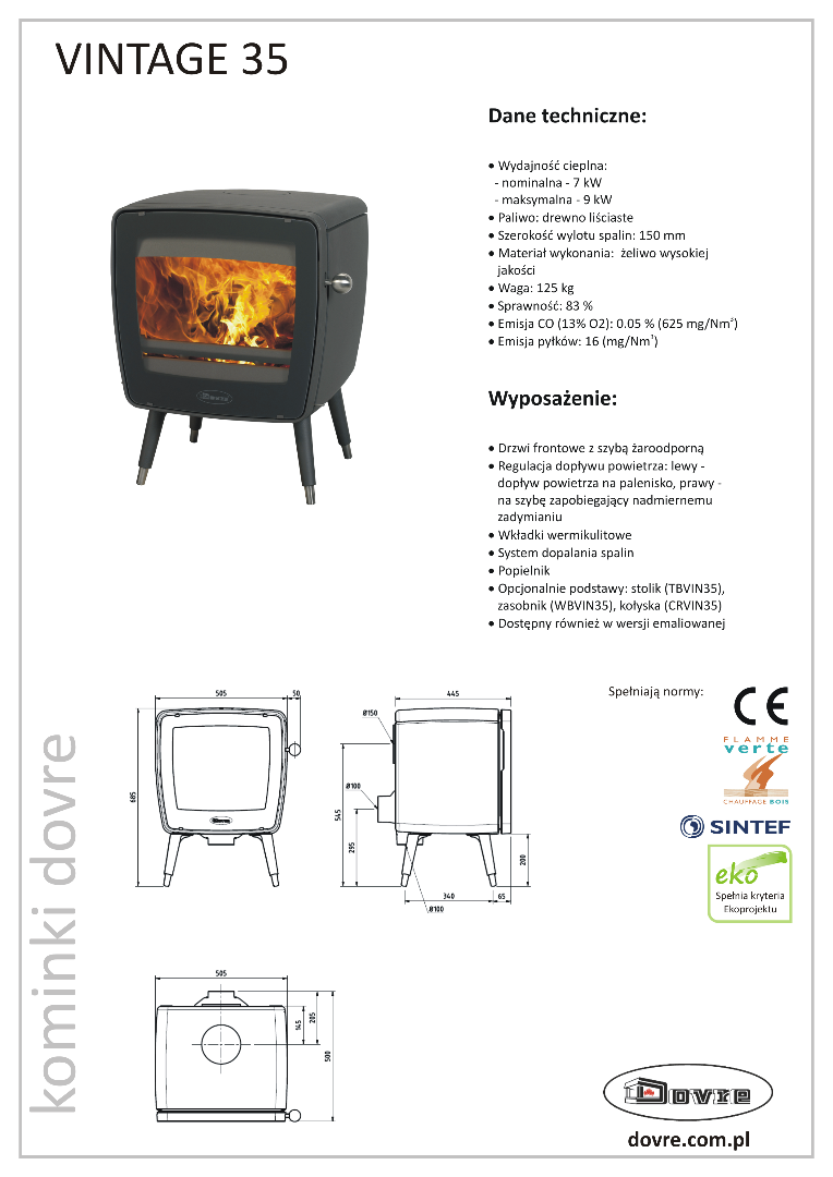 Voľne stojace liatinové kachle na drevo Dovre Vintage 35