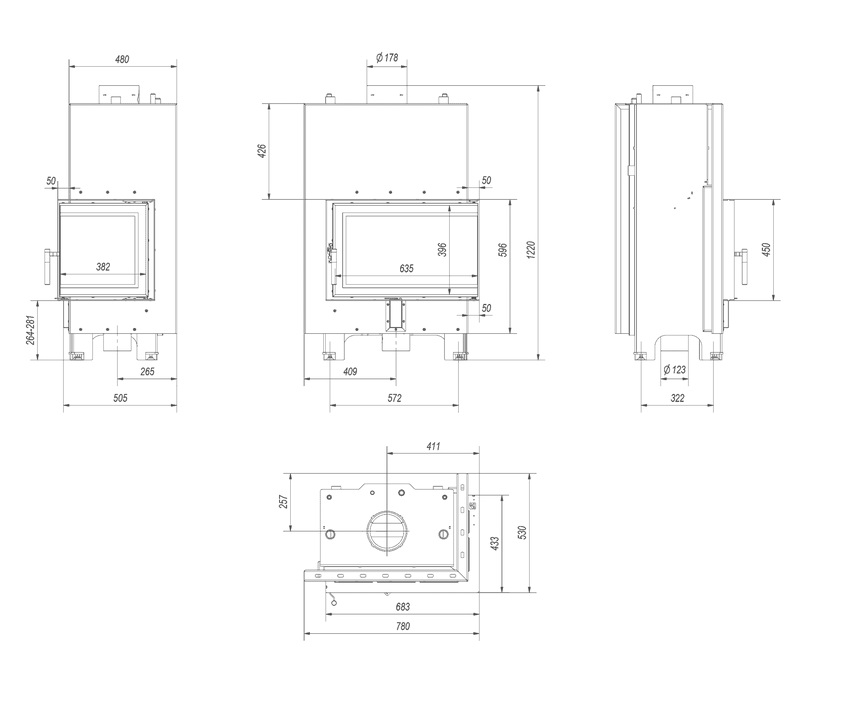 A decorative glass pane withstanding temperatures up to 800 ° C, which gives the fireplace a modern and elegant look, visually enlarges the front of the cartridge.