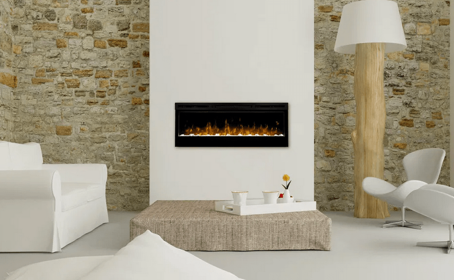 Panoramiczny kominek ścienny wyposażony w efekt płomienia Optiflame LED i palenisko z akrylowymi kostkami lodu imitującymi diamenty, dodatkowo wzbogacone efektem mieniących się kolorowych świateł LED. Ta opatentowana technologia sprawia, że światło kominka wygląda nadzwyczaj efektownie. Kominek wyróżnia się nowoczesnym wzornictwem pozwalającym wkomponować urządzenie w każde pomieszczenie. Wyposażony jest w termowentylator z termostatem, zintegrowany wyświetlacz LED, przełącznik mocy grzewczej i multifunkcyjny pilot zdalnego sterowania. Zastosowanie technologii LED wydatnie obniża koszt użytkowania efektu płomienia ? koszt pracy efektu świetlnego wynosi ok. 2 gr/1 h! Doskonałym sposobem na szybki i łatwy montaż kominka Prism 50″ LED na ścianie jest zastosowanie Ramy 50″ dostępnej w kolorze ciemnego orzecha, czarnym oraz białym.