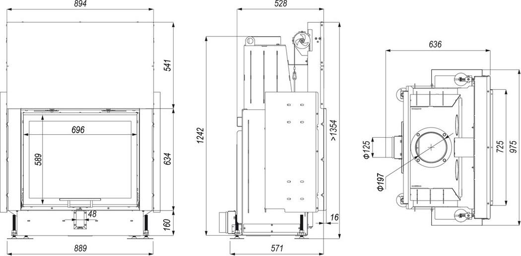 Wkład kominkowy narożny NADIA 14 prawy BS gilotyna