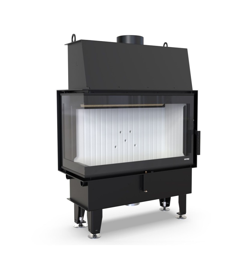 Konstrukcję wzmacnia wysoki czopuch Ø194 mm oraz gęsto rozmieszczone radiatory na ścianach zewnętrznych urządzenia, co zwiększa wymianę ciepła i skraca czas nagrzewania.