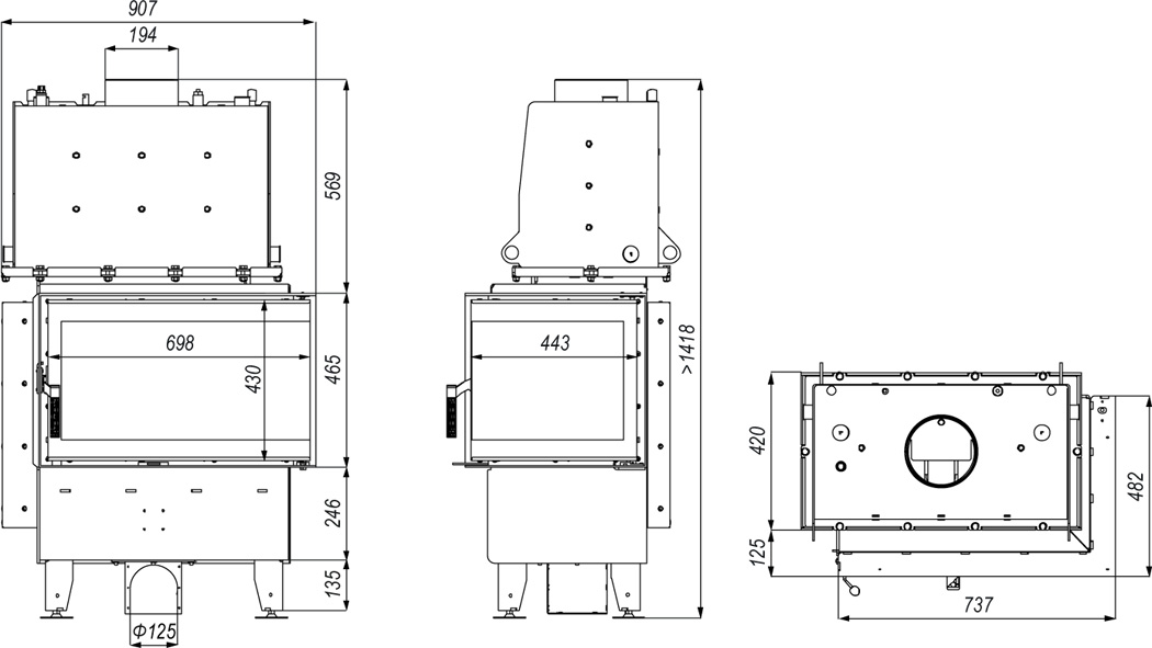 6 480,00 zł Dodaj do koszykaKominek powietrzny stalowy KRATKI LUCY prawy BS 12 kW Ø 200