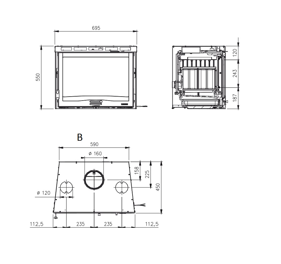 7 370,00 zł Dodaj do koszykaKominek powietrzny stalowy KRATKI LUCY lewy BS 12 kW Ø 200