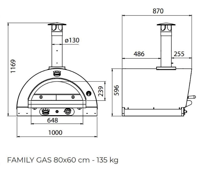 Włoski piec do pizzy Family 80×60 Hybrydowy na gaz i drewno kolor Antracyt