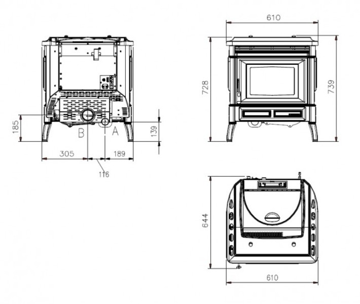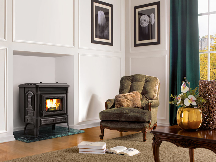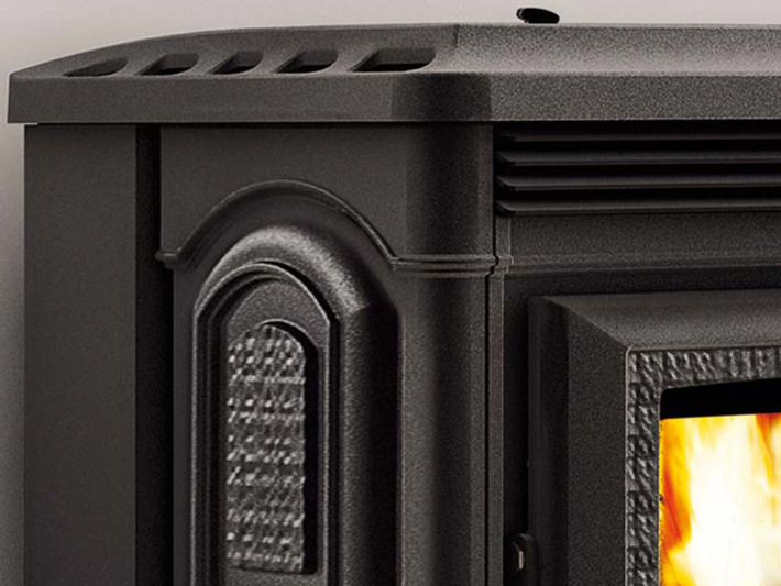 Piecyk wolnostojący na pellet do ogrzewania jednego pomieszczenia. Obudowa piecyka wykonana z żeliwa. Panel sterujący z wyświetlaczem LED. Palenisko oraz drzwiczki żeliwne, wyjmowany popielnik, wbudowana sonda pomiaru temperatury w pomieszczeniu, pilot.